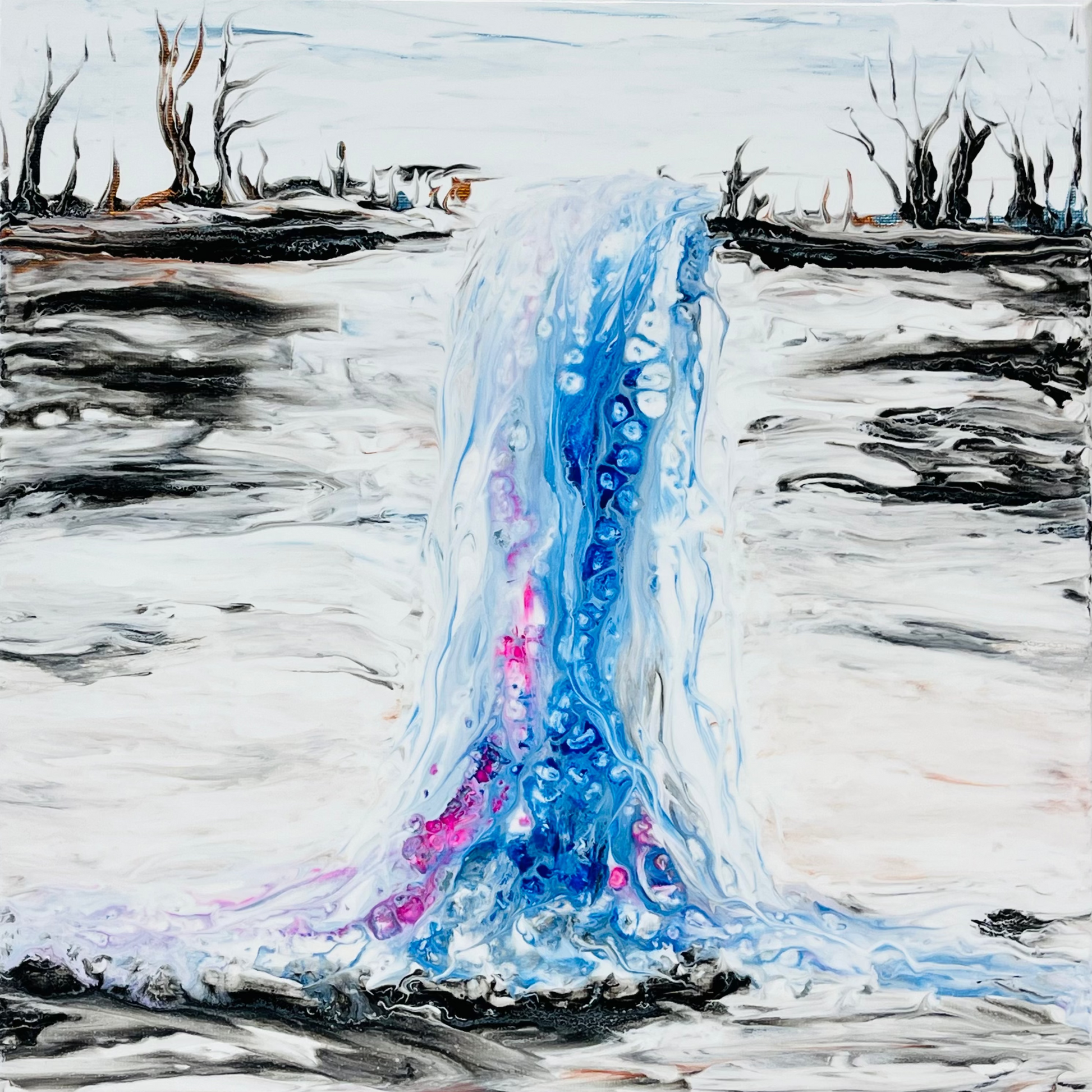 I like the idea of putting positivity out into the world and I often find that it does, in fact, flow both ways. This is a delicate waterfall with pops of a custom-blended pale, frosty blue metallic colour that I definitely need to make more of.