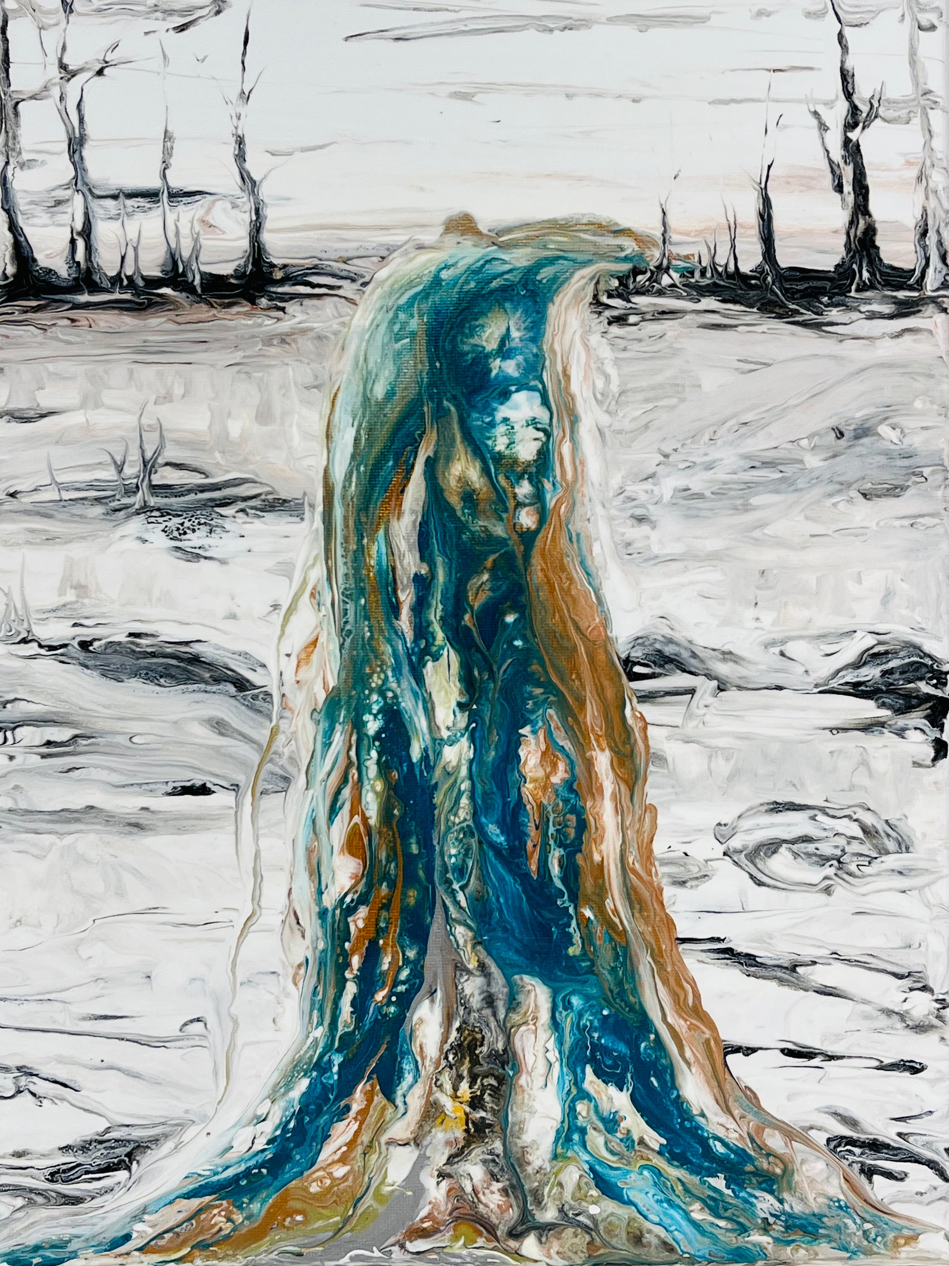 This one was just for the love of cascading molten metallics set off against a (mostly) black and white background.