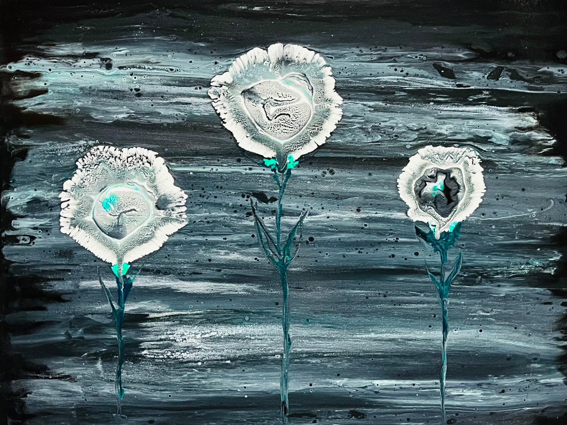 Dendrites. Yes, there is science behind fluid acrylics and the branching effects on these flowers is a fun example. It's a moody little piece, a companion to "Feel Like I'm Floating".